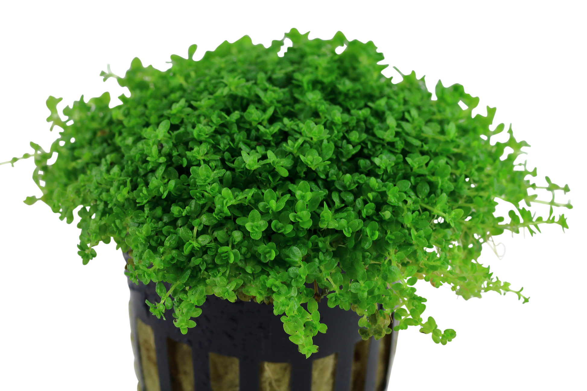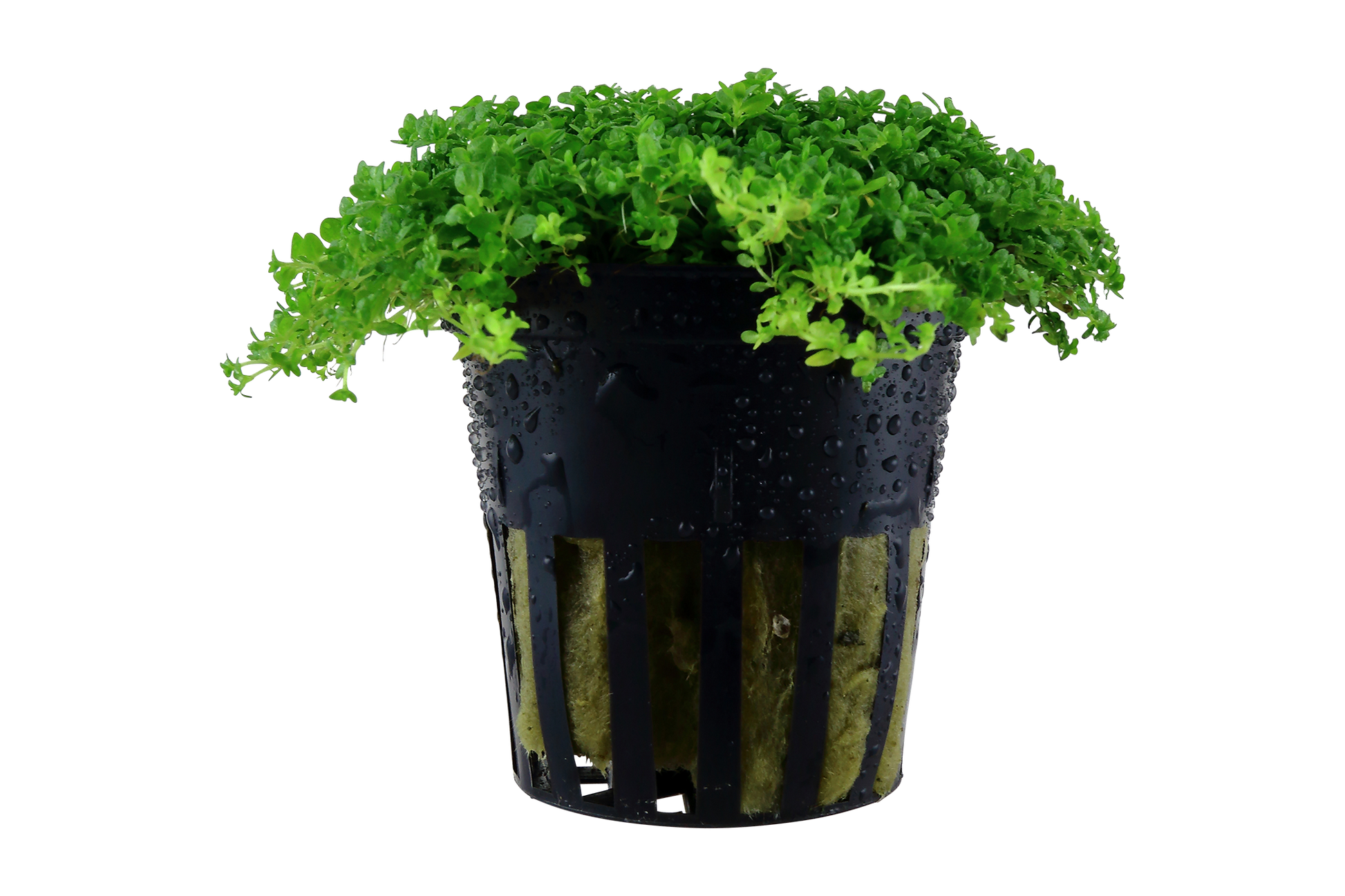 Micranthemum callitrichoides 'Cuba', auch bekannt als HC Cuba, ist einer der kleinsten Bodendecker im Aquascaping. Die winzigen, runden Blätter bilden bei guter Beleuchtung und CO₂-Zufuhr einen dichten, sattgrünen Teppich im Vordergrund. Ideal für Nano- und High-Tech-Aquarien.
