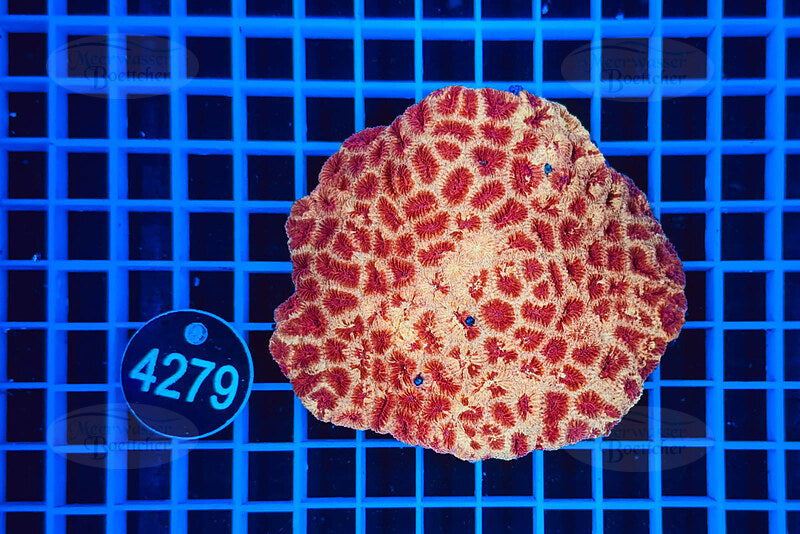 Diese Favia ist eine farbintensive, robust wachsende LPS-Koralle mit markanter, wabenartiger Polypstruktur und kräftiger Fluoreszenz unter Blaulicht. Ihre klar abgegrenzten Zellen und starken Farbkontraste machen sie zu einem beliebten Blickfang in modernen Riffaquarien. Favia gehört zu den pflegeleichten LPS-Arten und eignet sich ideal für Einsteiger sowie erfahrene Meerwasseraquarianer.