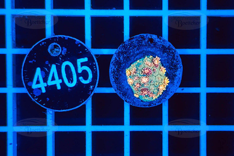 Eine farbstarke, ausdrucksvolle Goniopora als WYSIWYG-Ableger – perfekt für alle, die ein lebendiges, blütenartiges Highlight mit starker Fluoreszenz in ihrem Riffaquarium suchen.