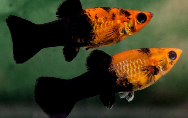 Ein dunkler Bodengrund und gezielte Beleuchtung betonen den gold-schwarzen Tuxedo-Kontrast besonders schön. Ideal kombinierbar mit Black- oder Gold-Mollys.
