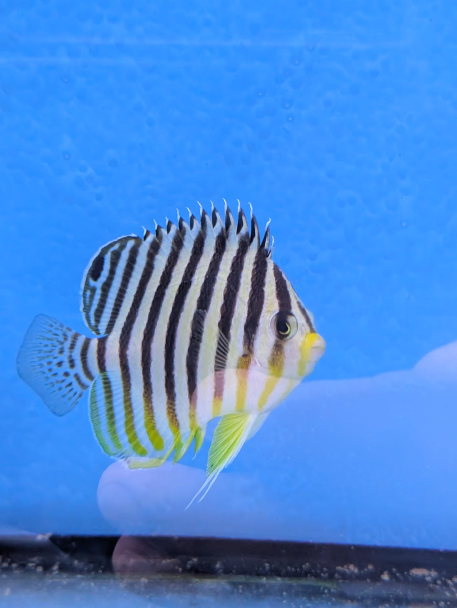Der Zebra Zwergkaiserfisch (Paracentropyge multifasciata) ist ein echter Geheimtipp für Liebhaber seltener und außergewöhnlicher Meeresfische. Mit seiner einzigartigen Streifenzeichnung, seinem eleganten Schwimmverhalten und seiner friedlichen Art gehört er zu den faszinierendsten Zwergkaisern überhaupt. Besonders für erfahrene Meerwasseraquarianer ist er ein wertvolles Highlight, das jedem Riffaquarium einen exklusiven Charakter verleiht.