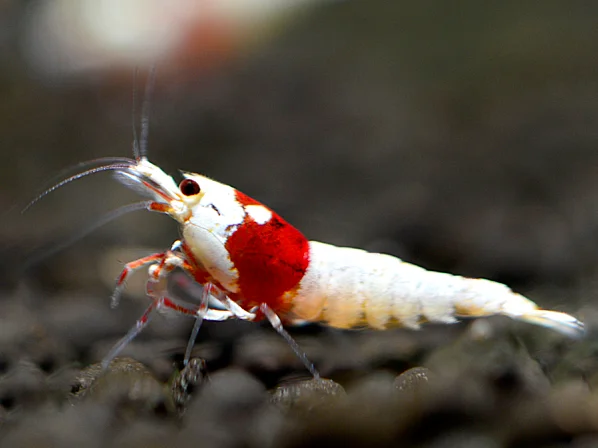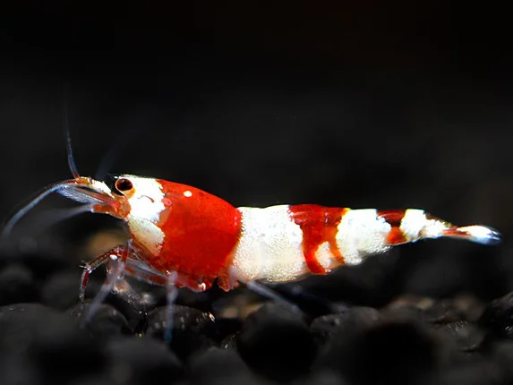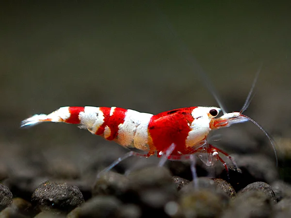 - Färbung: Das typische Erscheinungsbild der Red Bee Garnele besteht aus einer roten Grundfarbe mit schneeweißen Bändern oder Flecken. Diese kontrastreiche Musterung kann je nach Zuchtform und Qualität stark variieren. Es gibt mehrere Zuchtgrade, bei denen Garnelen mit besonders intensiven Farben und klaren Abgrenzungen höher bewertet werden.