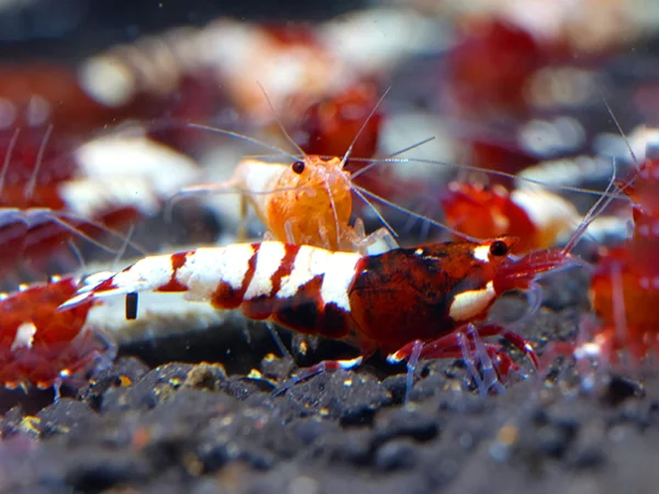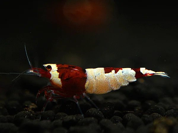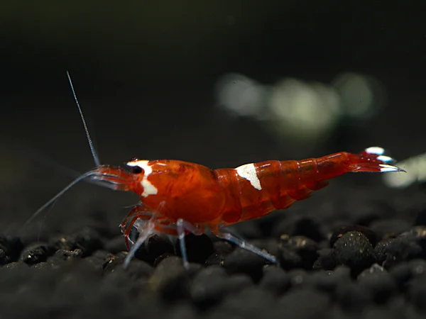 - Färbung: Diese Garnele besticht durch ihre kräftigen roten und weißen Farbfelder, die in einem klaren Kontrast zueinander stehen. Die roten Bereiche leuchten besonders intensiv, während die weißen Markierungen eine edle Reinheit ausstrahlen.