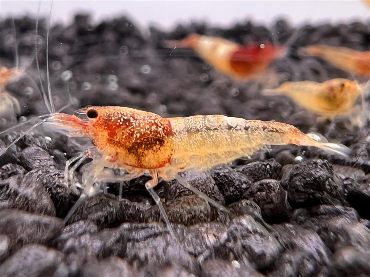 - Wasserwerte: Diese Garnelen bevorzugen weiches, leicht saures Wasser mit einem pH-Wert von 5,5 bis 6,5 und einer Temperatur zwischen 20 und 24 °C. Sie sind empfindlich gegenüber Schwankungen in den Wasserwerten, daher sind stabile Bedingungen und regelmäßige Wasserwechsel wichtig.