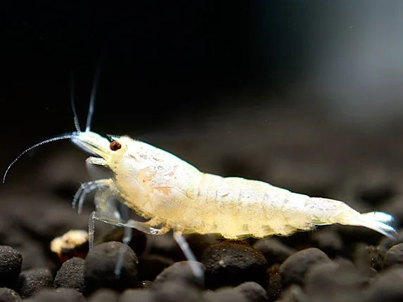 - Färbung: Diese Garnele zeichnet sich durch ihr vollkommen weißes, fast schneeähnliches Aussehen aus. Ihre gleichmäßige und deckende Färbung macht sie besonders attraktiv, da sie einen edlen und eleganten Eindruck im Aquarium hinterlässt.