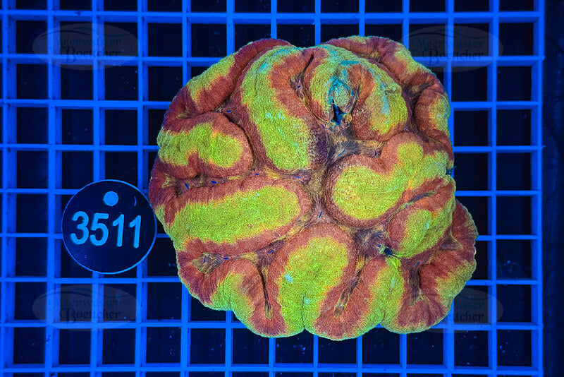 Diese Symphyllia ist eine außergewöhnlich farbintensive LPS-Koralle, die durch ihre weiche, fleischige Struktur, tiefen Farbverläufe und starke Fluoreszenz unter Blaulicht beeindruckt. Die Koralle zeigt – je nach Variante – kräftige Rot-, Grün-, Türkis-, Orange- oder Multicolor-Muster und wirkt durch ihre natürlich geschwungenen Polypen besonders edel und massiv.